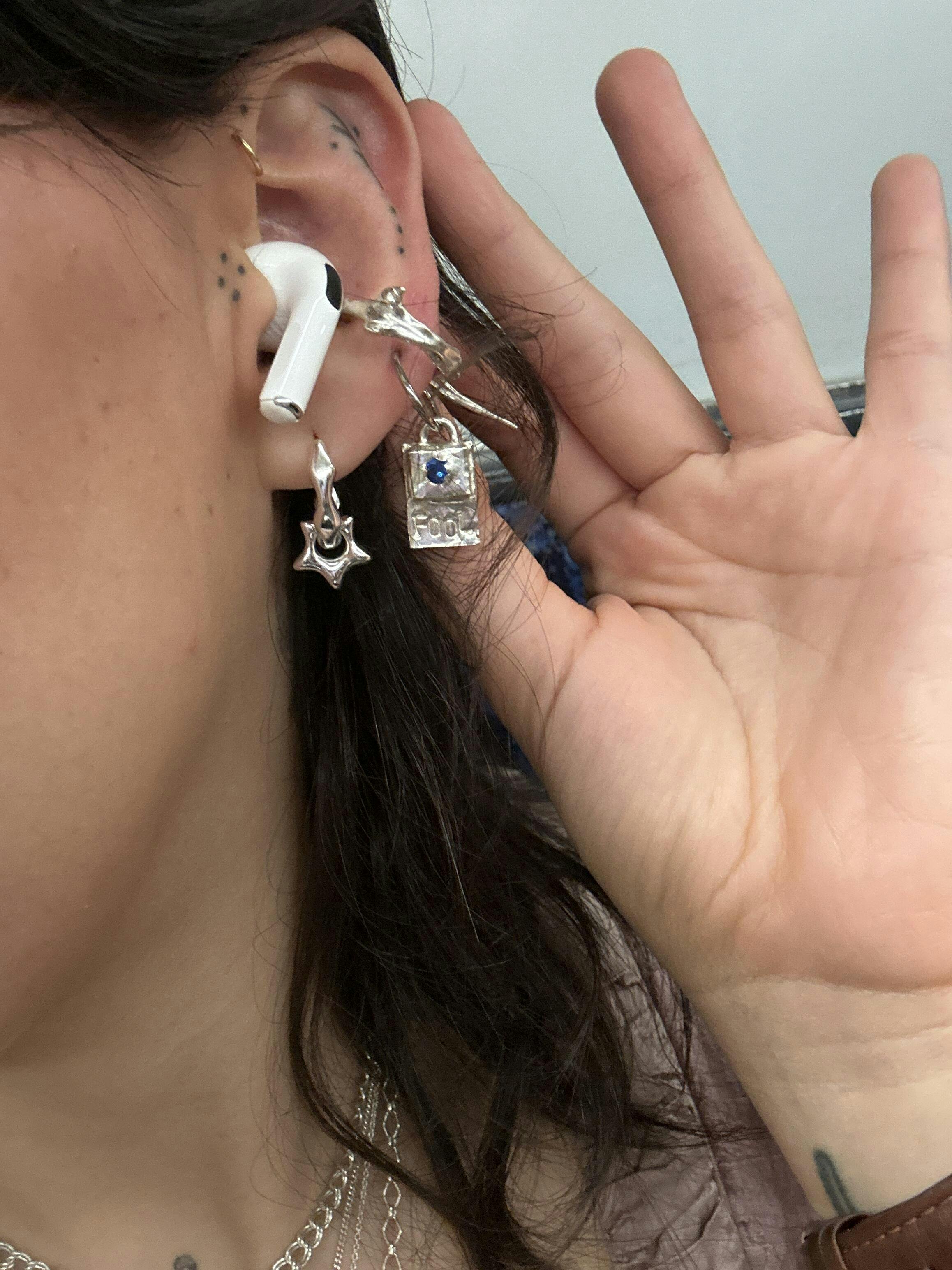 ロキのお気に入りのこのジュエリーは、存在感がありながらも非常に軽量なので、毎日身に着けることができます。耳に着ける鎧の軌道は、サソリやクモの母のエネルギーを宿しています。彼女の軌道は螺旋状で、周期的でありながら進化的でもある彼女は、日常の膜を突き破ります。オーストラリアで、使用済み再生スターリングシルバーのみを使用して手作りされています。
